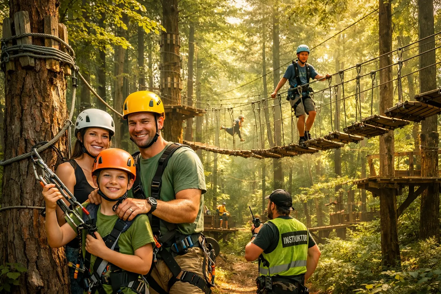 - ✔ Hochseilgarten-Parcours im Wald